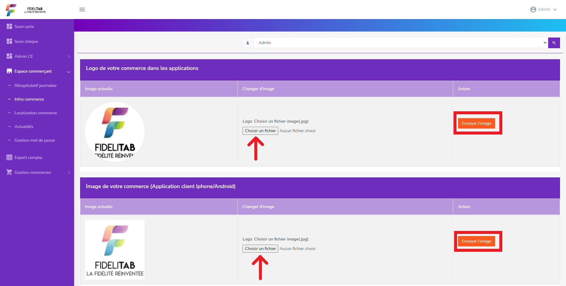 2 | Pour changer la photo: cliquez sur choisir un fichier, sélectionnez le fichier souhaité puis cliquez sur "envoyer l'image"